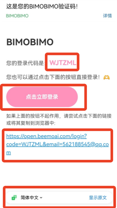 3、邮箱收到官方发送的验证码邮件后,复制邮件中的验证码内容或点击邮件内登录入口进行验证。