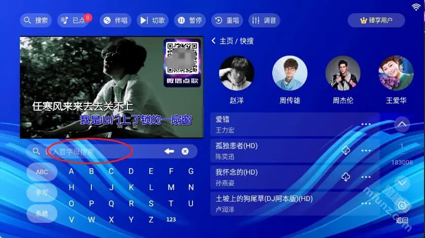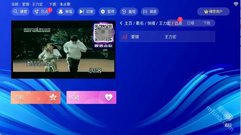 3、在点歌页面中选择喜欢的歌曲进行智能点歌操作,同时可查看当前已点播放歌曲列表。