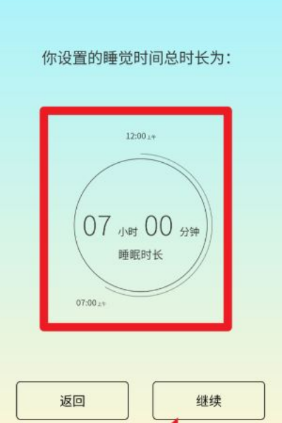 4、完成以上所有设置后系统自动计算每日睡眠时长,直观呈现作息规划的整体情况,确认无误后即可正式开始睡眠管理与小镇建造之旅。