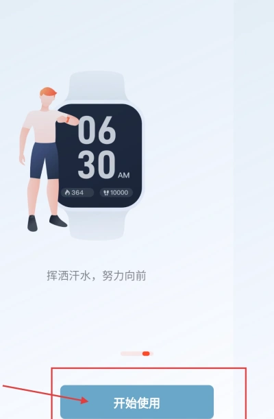 1、打开运动健康类应用后点击【开始使用】按钮,进入初始设置流程界面。