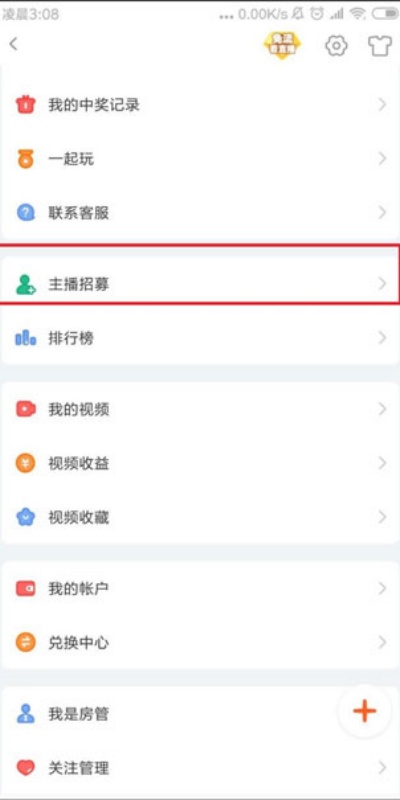 2、进入首页后点击左上角头像进入个人中心页面,在菜单列表中查找主播招募入口并点击进入相关功能界面。