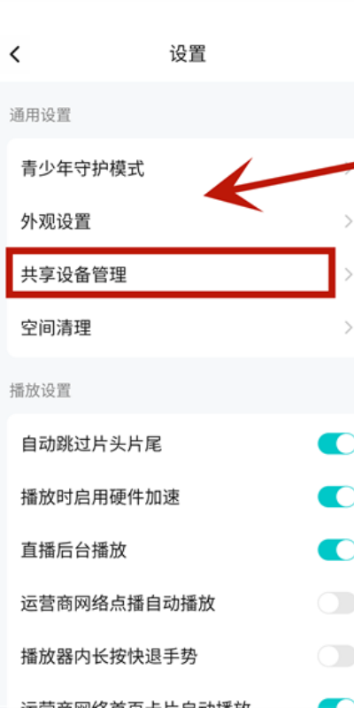 3、进入设置页面后查找共享设备管理功能并点击进入设备共享管理操作页面。