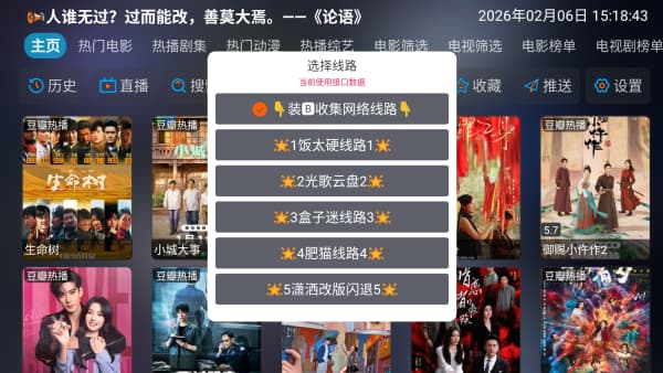2、点击“线路”选项,系统为您提供了多条播放通道。建议您根据网络环境自主选择,以确保后续观影过程流畅无阻。