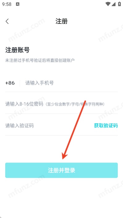 3、新注册账号可点击页面下方注册入口按钮进入账号创建界面进行操作。