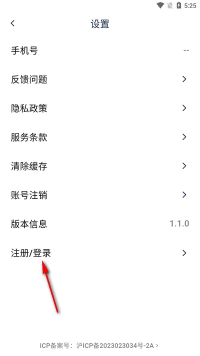 2、在设置页面下方位置选择注册或登录选项,进入账号操作界面进行下一步。