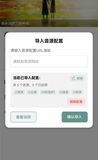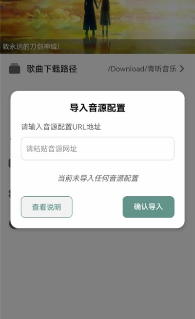 3、将音源链接粘贴至输入框中并点击确认导入,完成配置后即可正常使用音乐资源功能。