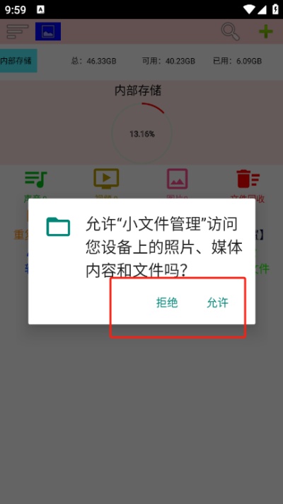 1、启动小文件管理应用后,需要授权相关访问权限,以便进行文件读取与管理操作。