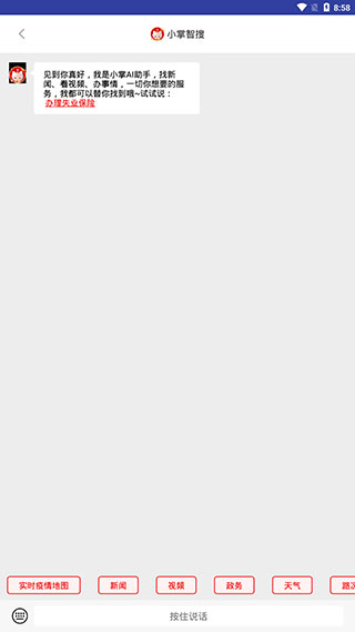 3、在“小掌智搜”中可语音或文字输入需求,快速查询新闻、视频或办事服务。