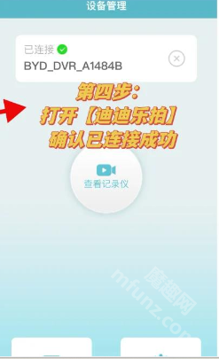4、返回迪迪乐拍应用界面后,顶部状态栏显示已连接BYD相关设备标识,点击【查看记录仪】功能入口,即可进入行车影像查看与使用页面。
