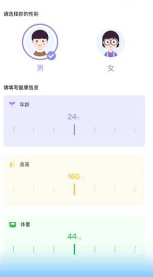 1、首次使用时,填入您的基础身体数据。这能让软件更“懂”您的代谢情况,为您量身打造每日的能量平衡方案。