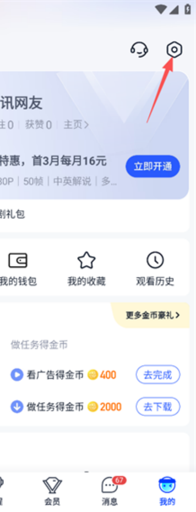 2、在个人中心右上角找到“设置”图标并点击进入。