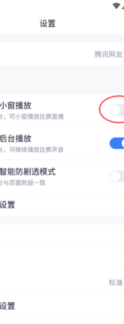 3、在设置页面中找到“比赛直播小窗口播放”功能并开启开关。