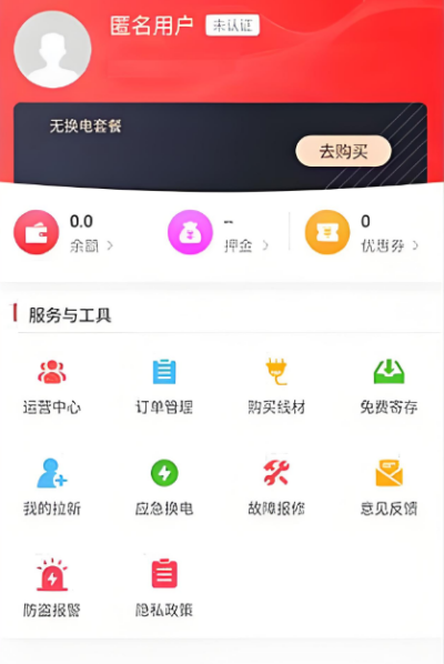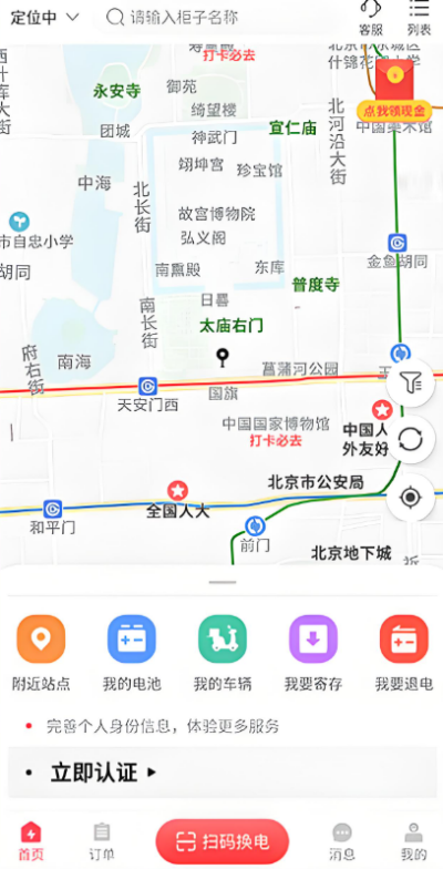 1、进入这锂换电app首页后,界面会集中展示常用入口功能,例如附近换电站查询、电池状态查看等模块,便于快速获取基础服务信息,减少操作路径,使日常使用更加直接顺畅。