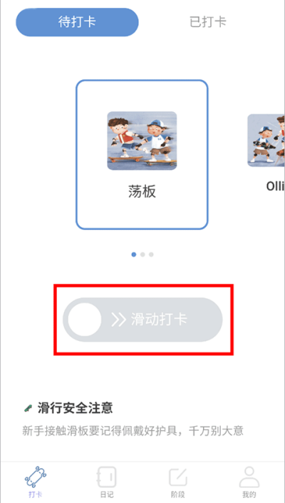 1、打开滑行无界APP官方版后无需登录即可进入记录页面,在该页面可进行滑板每日打卡操作,通过对应项目滑动即可自动完成运动记录。
