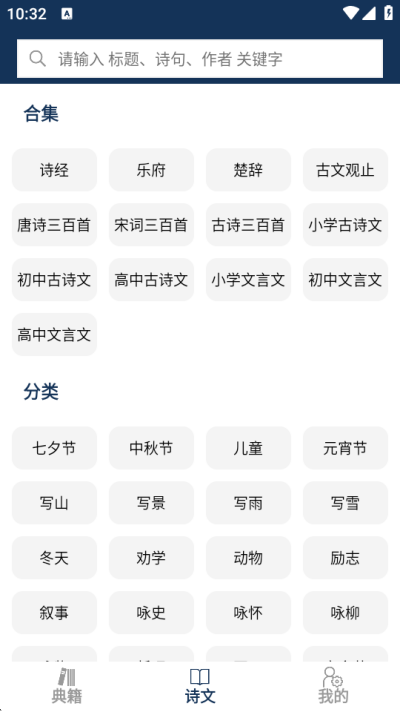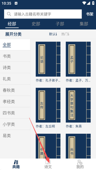 2、在主界面选择诗文模块入口,进入对应古籍或诗文内容浏览页面进行查看。