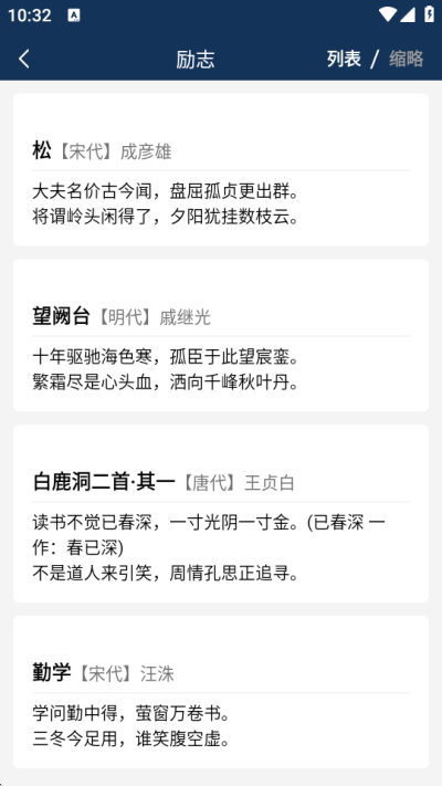 4、进入分类页面后浏览具体作品列表,选择目标诗文进入详情页进行阅读与学习。
