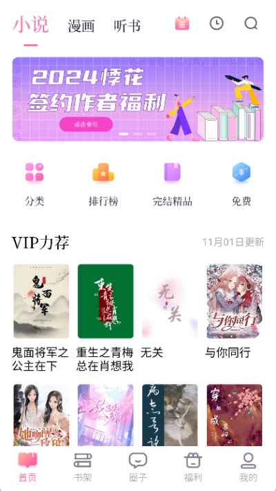 1、用户首先打开悸花乐读App并进入首页主界面,在界面加载完成后即可开始进行后续操作,确保各功能入口正常显示。