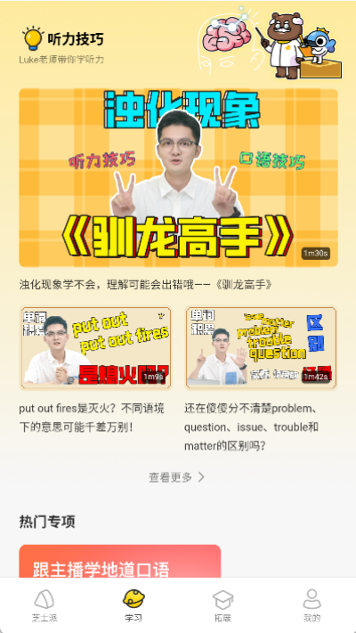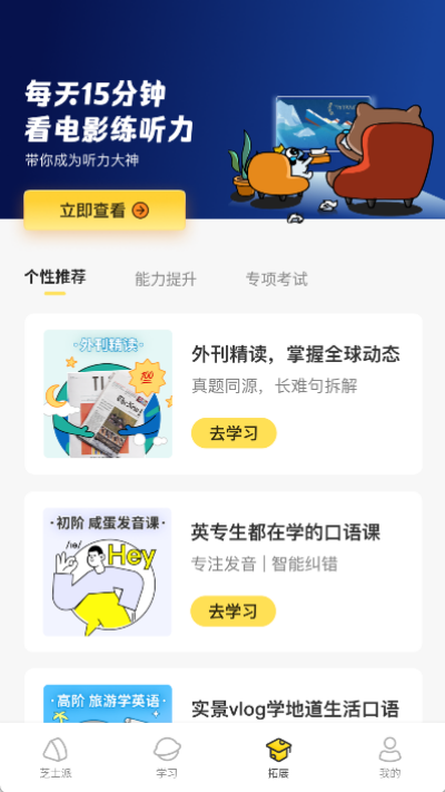 芝士派听力是一款面向英语听力训练与理解提升的学习软件,通过分级内容与场景化练习方式帮助学习者逐步提升听辨能力与语感,同时结合多样材料覆盖日常交流、考试训练与实用表达等多种需求,让学习过程更具连续性与针对性,并适合不同基础阶段使用。内容涵盖听力材料解析与跟读练习,便于在不同学习节奏下进行强化训练与复盘使用。覆盖多种听力题型练习形式,适合长期英语能力提升规划。便于持续巩固。提升效果明显。训练路径清晰。