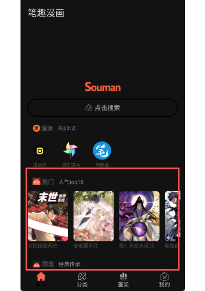 1、打开笔趣漫画app,进入主界面浏览推荐内容,或通过分类标签查找感兴趣的漫画。