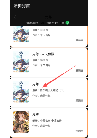 2、进入漫画源选择页面,任意选取一个可用漫画源即可。