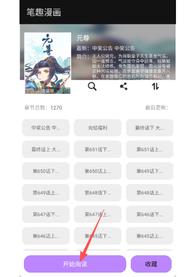 3、进入漫画详情页面后,点击开始阅读按钮,就能开启畅快的漫画阅读之旅。