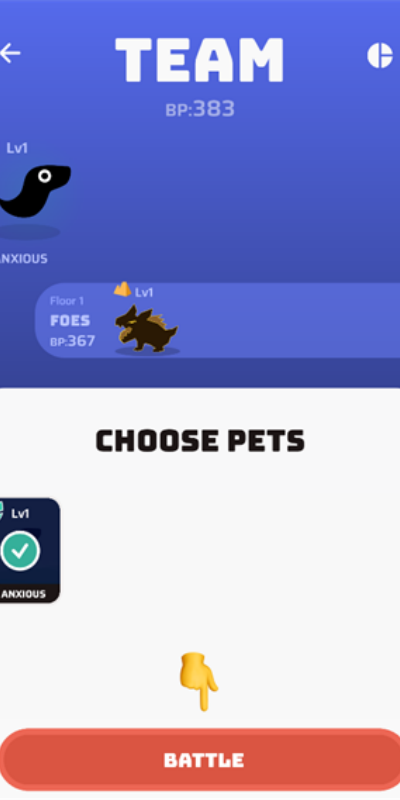 4、根据敌方情况选择出战宠物阵容,再点击“BATTLE”进入正式回合战斗。