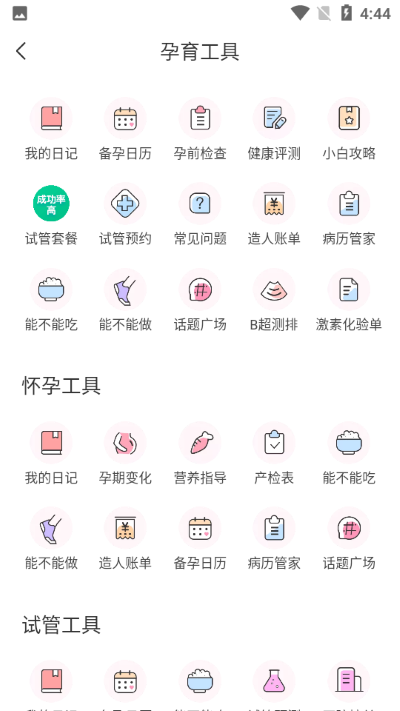3、应用内还提供多种辅助工具模块,可根据需求自由选择使用,提升备孕体验的便利性。