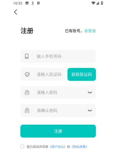 3、输入个人手机号,获取并填写验证码,完成注册登录。