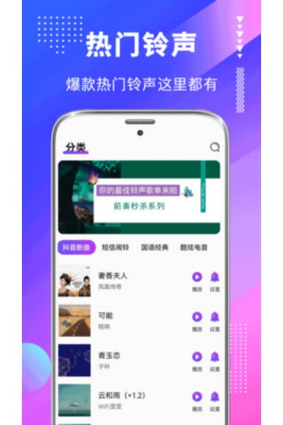 覆盖全品类音乐,支持一键设置为来电闹钟短信铃声,无需复杂操作,省时又便捷。
