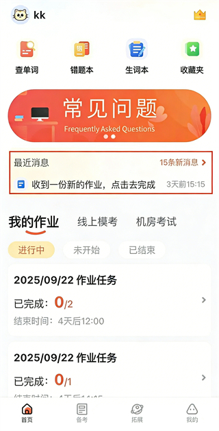 3、成功加入班级后,系统将自动同步班级数据,用户可以随时查看老师布置的作业内容以及各类考试任务安排。