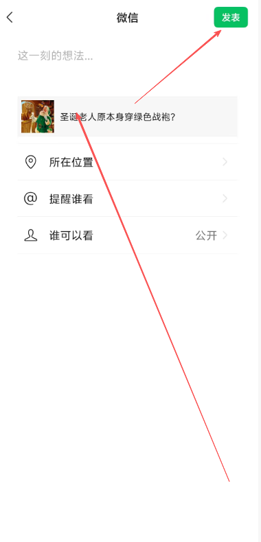 3、随后页面会自动跳转到朋友圈发布界面,在编辑框中输入想要搭配的文字内容或简单说明,确认无误后点击发表按钮,即可将该内容成功分享至朋友圈。